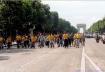 A 14h30 sonnait le grand départ, la Criée. Les uns derrières les autres, en banc, nous avons envahi les rues de Paris, formant une marée " Verte " incroyable en ces lieux historiques. Encadré d'une cinquantaine de " Petits Hommes Jaunes " de Rollers & Coquillages* qui tempéraient les pêcheurs grognons, sur leur navire à moteur et sauvé des eaux les naufragés, nous visitions tranquillement et d'un œil nouveau la capitale.